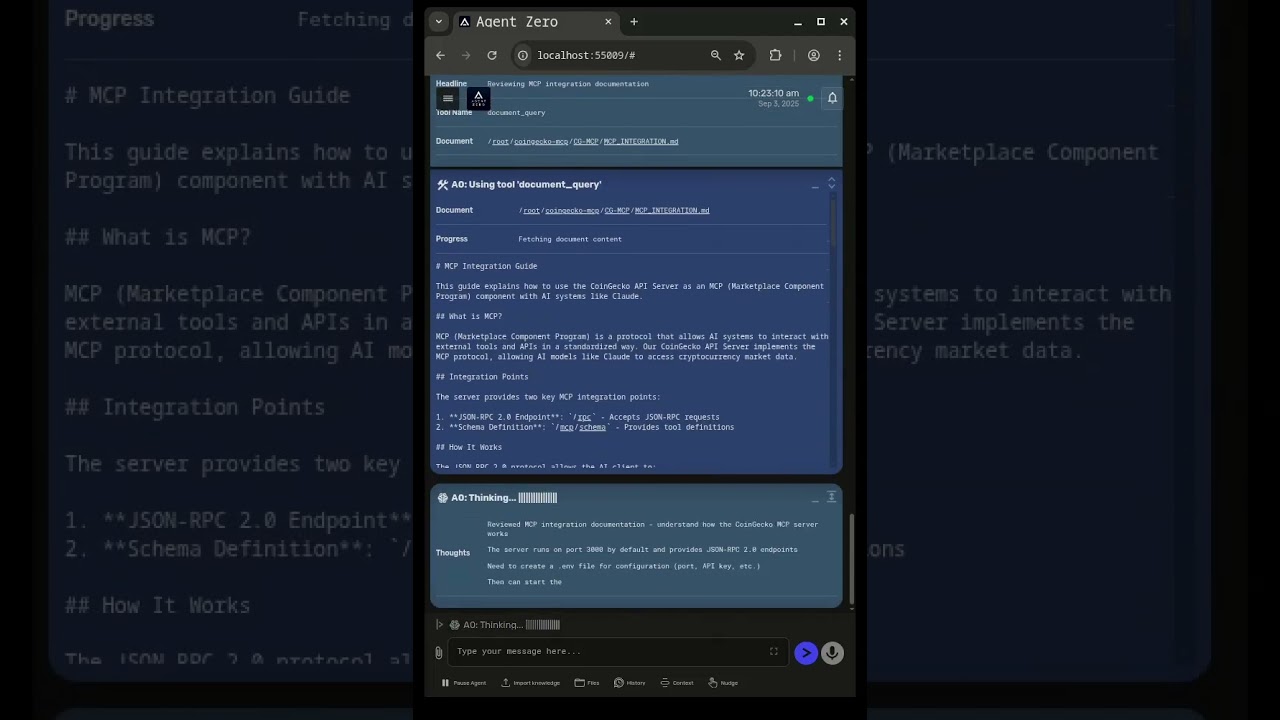 🚀 Agent Zero MCP Integration: CoinGecko Cryptocurrency Data Access
