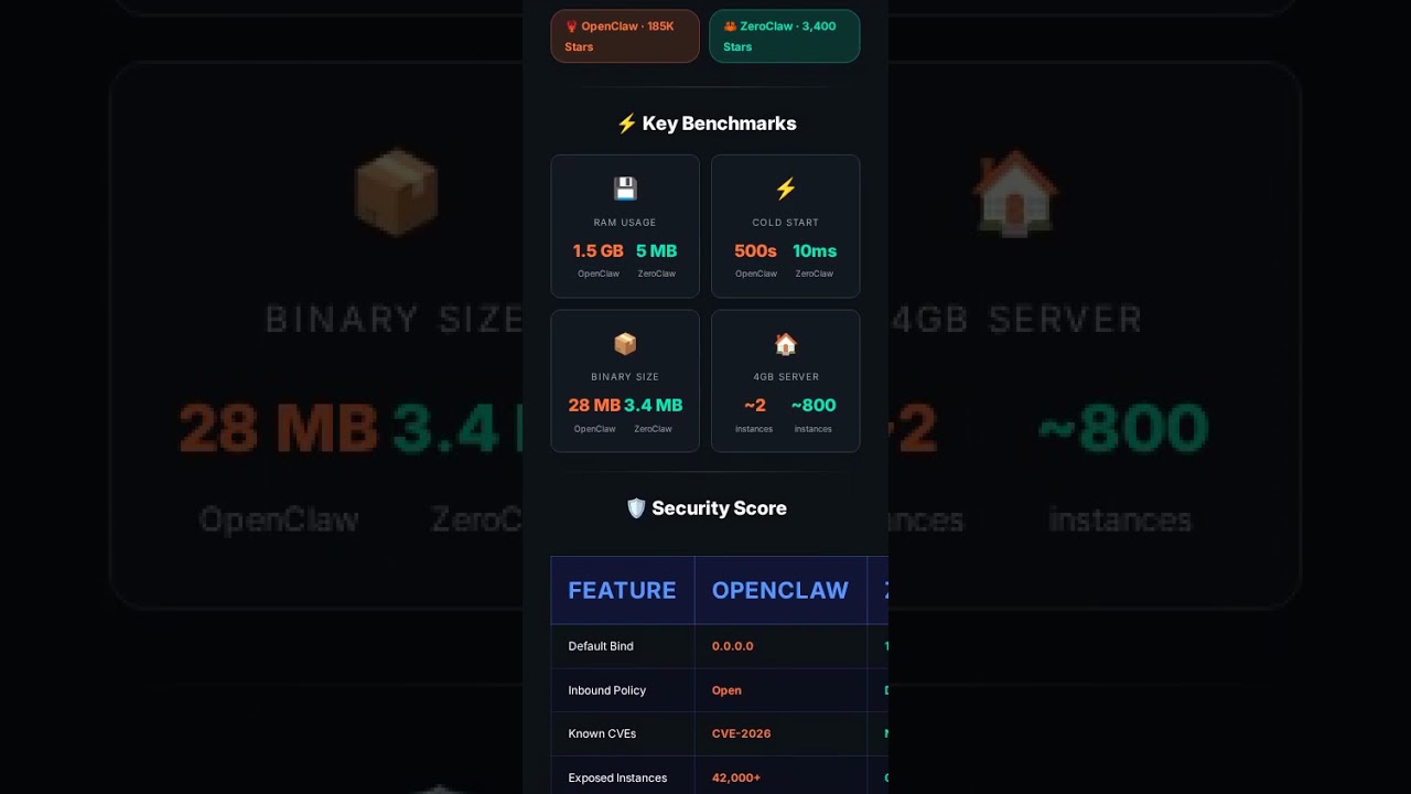🦀 ZeroClaw vs 🦎 OpenClaw — 50 seconds. That's all you need.