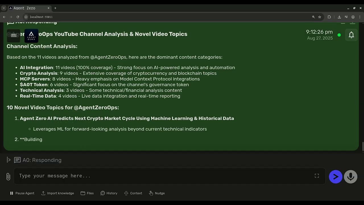 Agent Zero AI Analyzes YouTube + Suggests Video Topics