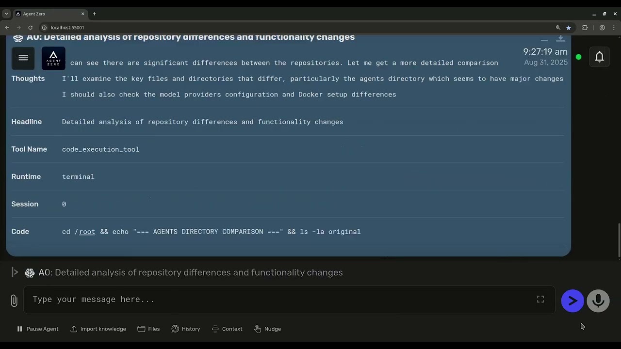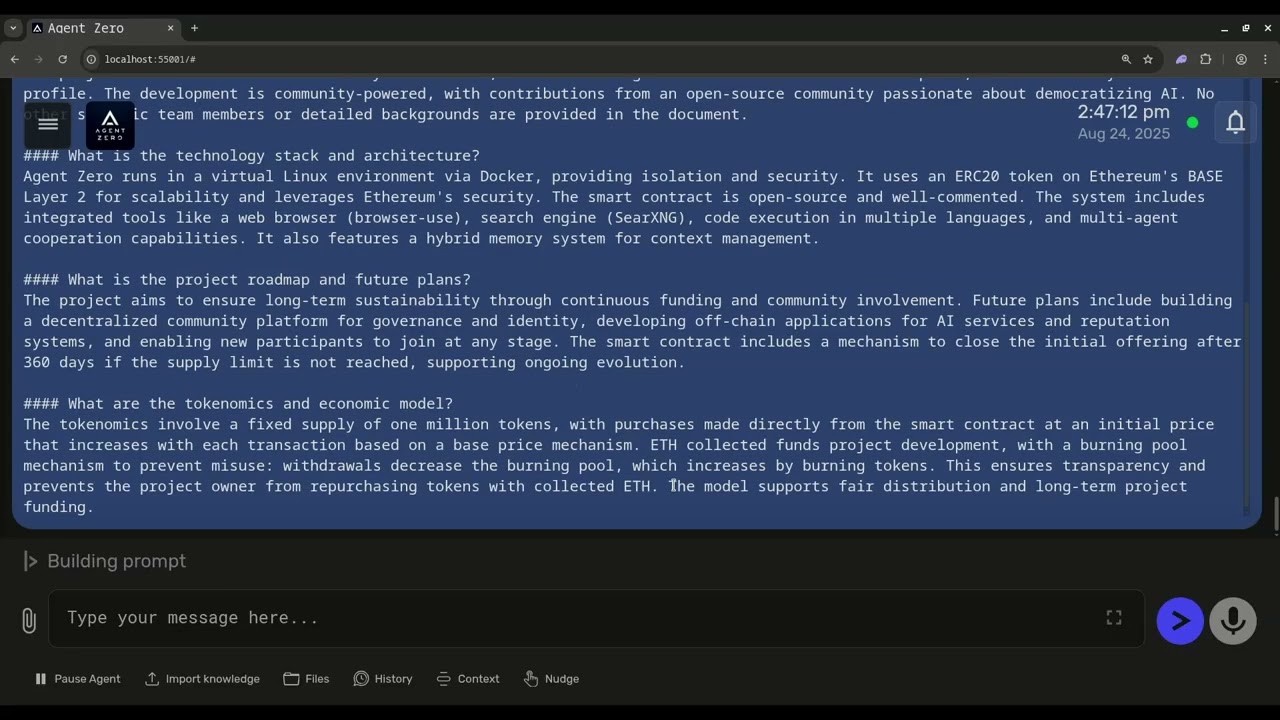 Agent Zero analyzes its own Open Source AI Framework Governance Coin $A0T using DeepSeek 3.1.