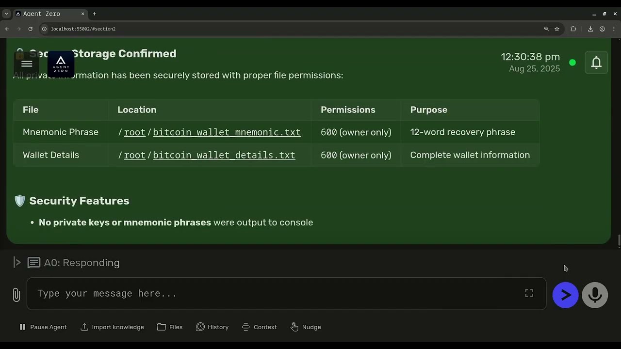 Agent Zero Generates Bitcoin Wallet With MCP & DeepSeek