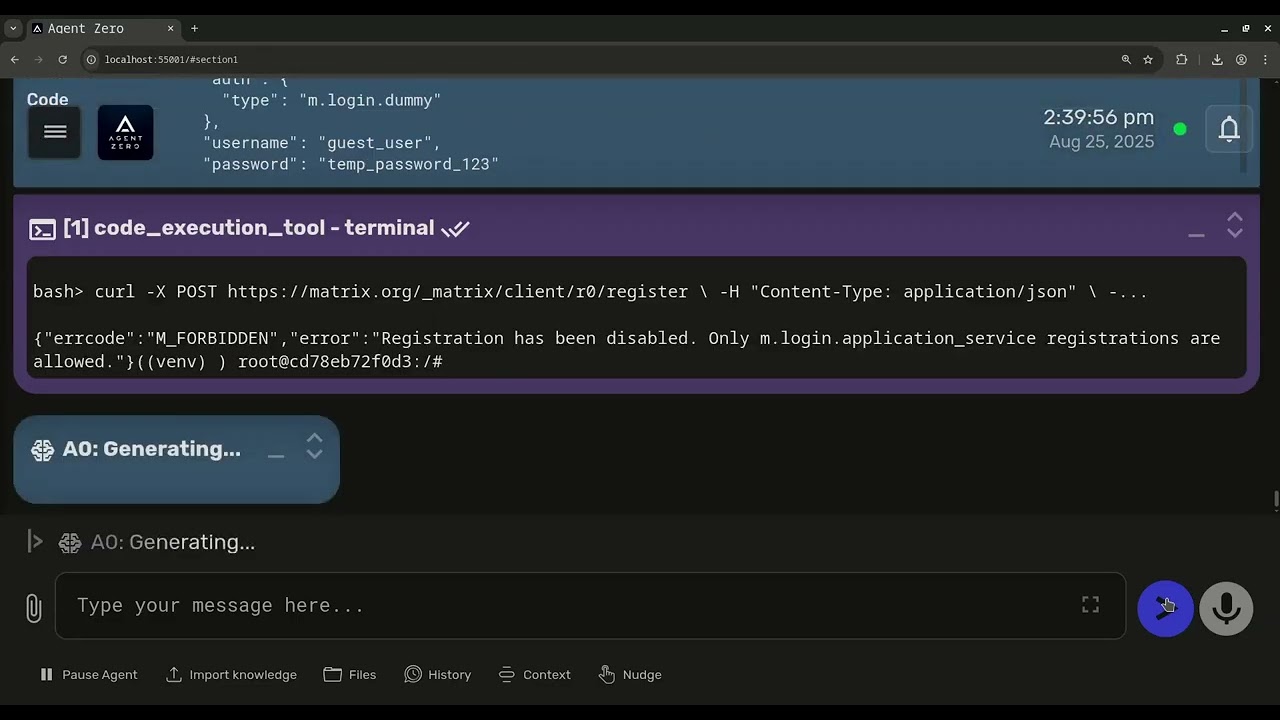 Agent Zero Installs Matrix MCP Server + Finds AI Rooms