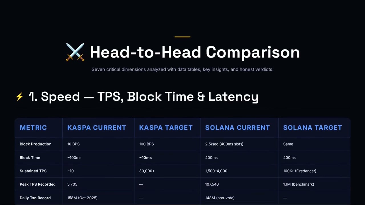 Executive Summary, Kaspa Upgrades, Solana Architecture, Head-to-Head Comparison, Strengths & Weaknesses, Roadmap, Confidence Assessment.